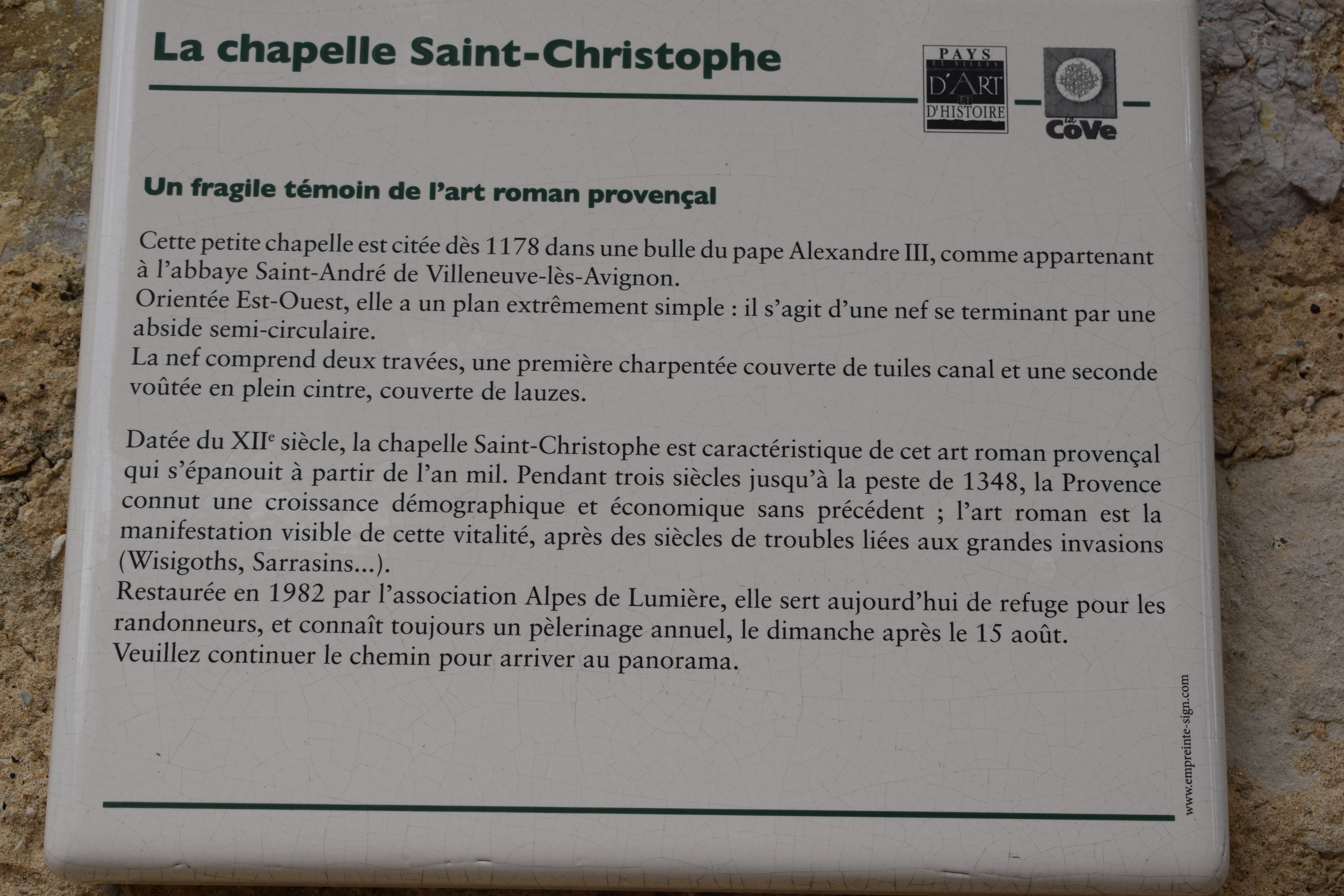 Pe drumuri de munte, mergând eu prin zona Vaucluse a Franței, dau peste un indicator turistic și anume capela Saint Christophe. Urc un drum ușor de parcurs și ajung la această capelă din secolul al XII lea, foarte veche și bineînțeles că restaurată (îmi place că în Franța găsesc multe bisericuțe restaurate de foarte de demult), încă din epoca romană. Priveliștea este foarte frumoasă și jos se aude chiar și un râu. M-am apropiat de marginea drumului și am văzut o cascadă, am aflat apoi că se numește cascada Saint Christophe, deci am decis să ajung și la această cascadă. Drumul este mai dificil, sunt puse lanțuri pe lângă stânci, frânghii pentru escaladat, însă nu chiar atât de dificil, că și o începătoare ca mine în ale escaladatului, se descurcă. Parcarea însă cică-i bântuită de hoți (am aflat după, deci au și ei hoții lor), 😀 scriau unii pe un site, eu însă am scăpat, că Sfântul Cristofor este protectorul călătorilor, mai ales a celor cu mașină, sau cel puțin așa am găsit scris pe net despre acest Sfânt. El a trăit în jurul anului 250 e.n. și iată ce legende circulă despre el: